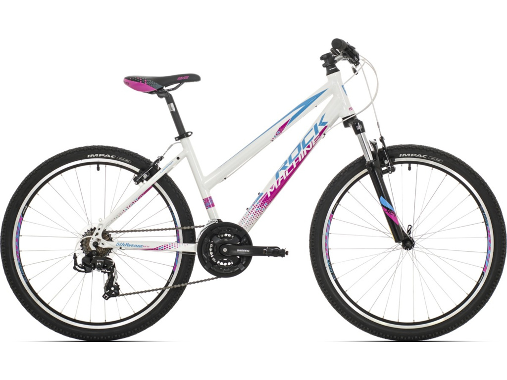 Rock Machine 5th Avenue 50 je dámsky horský bicykel na rekreačnú jazdu. Ľahký hliníkový rám má zníženú hornú rámovú rúrku pre jednoduchú montáž a demontáž. Bicykel je vybavený kvalitnou odpruženou vidlicou Suntour XCT so zdvihom 80 mm pre pohodlné