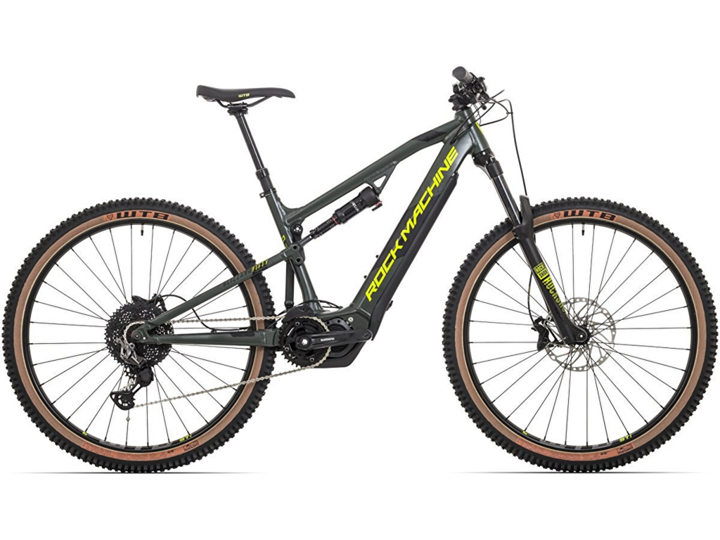 Celoodpružený trailový elektrobicykel ROCK MACHINE Blizzard INT2 e50-29 s pohonom Shimano STePS e7000, zdvihom 140/130 mm a teleskopickou sedlovkou určený na jazdu v náročnom teréne.