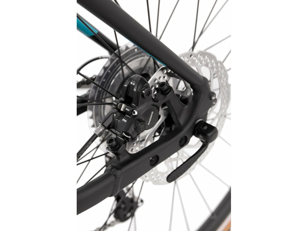 Crossový bicykel s pohodlnou geometriou na dlhé jazdy po cyklotrasách, asfalte a miernom teréne. Vysokokvalitný hliníkový rám s vnútorným vedením umožňuje montáž nosiča, blatníkov a nosiča bicyklov. Prevody Shimano 2×9 poskytujú dostatočný rozsah pre najstrmšie kopce a rýchle cyklistické trasy. Kvalitné hydraulické kotúčové brzdy vás bezpečne zastavia aj s plne naloženými batožinami a oceníte vzduchovú vidlicu RST VIV so zdvihom 80 mm.