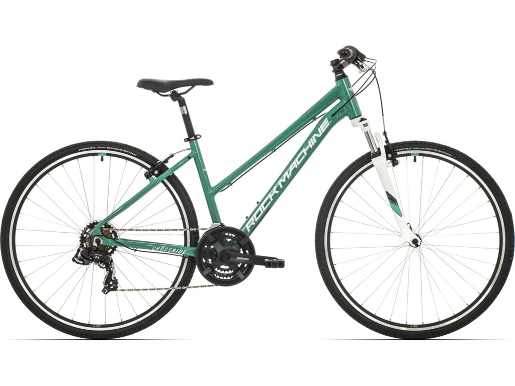 Rock Machine CrossRide 75 Lady uspokojí všetky rekreačné a športové ženy a dievčatá. Ideálny bicykel na cesty a spevnené aj nespevnené cyklotrasy. Ľahký hliníkový rám je vybavený odpruženou vidlicou a komponentmi Shimano s 21 prevodmi.
