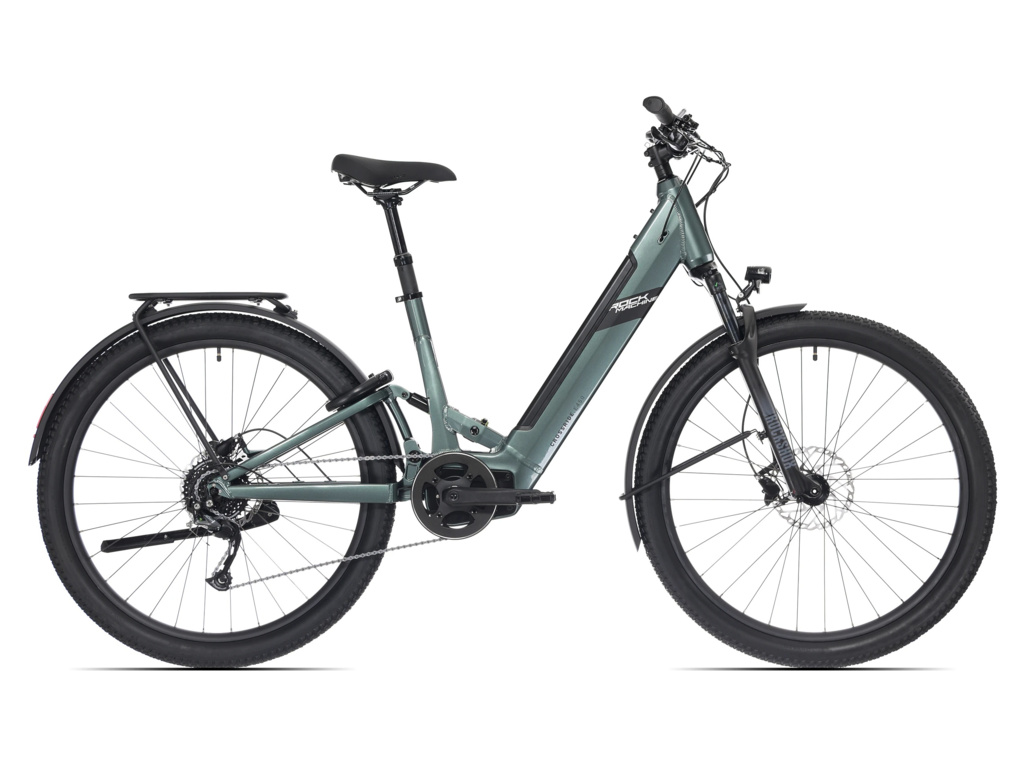 Rock Machine CrossRide e450 FS Touring vo verzii s nízkym nástupom a odpruženým rámom ponúka jazdné vlastnosti skutočného offroadu s pohodlím mestského cruiseru.