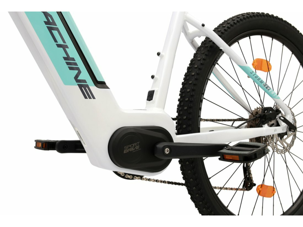 ROCK MACHINE Storm INT e70-29 je moderný horský elektrobicykel so zníženým rámom a stredovým motorom Sport Drive s výkonom 90 Nm, plne integrovanou 504 Wh batériou a dojazdom až 100 km. Vďaka novej Fun Ride geometrii je jazda na Storme jednoduchšia a pohodlnejšia nielen na cestách, ale aj v teréne. O komfort a istotu počas jazdy sa okrem zamykateľnej odpruženej vidlice starajú aj plášte WTB v rozmere 29x2.25" s univerzálnym rýchlym dezénom a bezpečné zastavenie zabezpečujú hydraulické kotúčové brzdy. Bicykel je možné jednoducho dovybaviť nosičom, blatníkmi, zámkom, svetlami a stojanom.