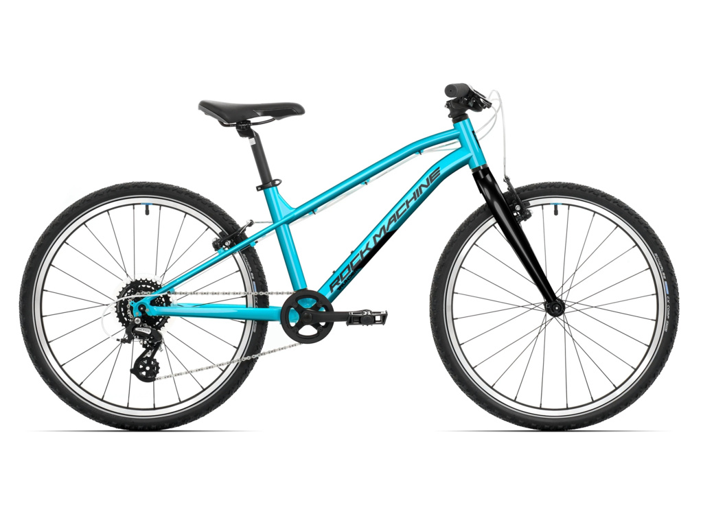 ROCK MACHINE Thunder 24 VB je 24-palcový ľahký detský bicykel, ideálny na bezstarostné výlety a prvé kontakty s trailom. Pohodlná a ľahko ovládateľná Junior Trail geometria pomáha mladým jazdcom osvojiť si správne návyky pri jazde v teréne. Bicykel je vhodný na jazdu po cyklotrasách, zatiaľ čo jednoduché a intuitívne radenie 1×8 umožňuje plne sa sústrediť na radosť z jazdy.
