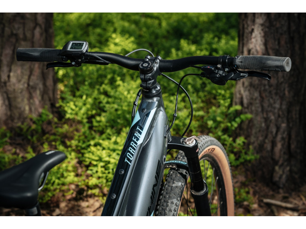 ROCK MACHINE Torrent INT e70-29 Lady je obľúbený dámsky ebajk so zníženou hornou trubkou pre pohodlnejšie nastupovanie a vystupovanie na pohonnom ústrojenstve Bosch Performance Line, ktoré poskytuje skvelý výkon, nízku hmotnosť a tichú prevádzku, s batériou s kapacitou 625 Wh a vylepšenou geometriou pre ľahšie ovládanie a pohodlnejšiu jazdu v teréne. Model má hliníkový rám s geometriou Fun Ride pre väčšie pohodlie a kontrolu v kopcoch a je vybavený vzduchovou vidlicou RST Aerial, prevodmi microSHIFT Advent 1x10 a spoľahlivými hydraulickými 4-piestikovými brzdami Shimano.