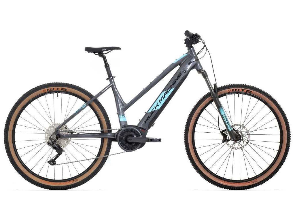 ROCK MACHINE Torrent INTe70 Lady je obľúbený dámsky ebajk so zníženou hornou trubkou pre pohodlnejšie nastupovanie a vystupovanie na pohonnom ústrojenstve Bosch Performance Line, ktoré poskytuje skvelý výkon, nízku hmotnosť a tichú prevádzku, s batériou s kapacitou 625 Wh a vylepšenou geometriou pre ľahšie ovládanie a pohodlnejšiu jazdu v teréne. Model má hliníkový rám s geometriou Fun Ride pre väčšie pohodlie a kontrolu v kopcoch a je vybavený vzduchovou vidlicou SR Suntour Epixon, prevodmi SHIMANO DEORE 1x10 a spoľahlivými hydraulickými 4-piestikovými brzdami SHIMANO BL-M4100/BR-MT420.