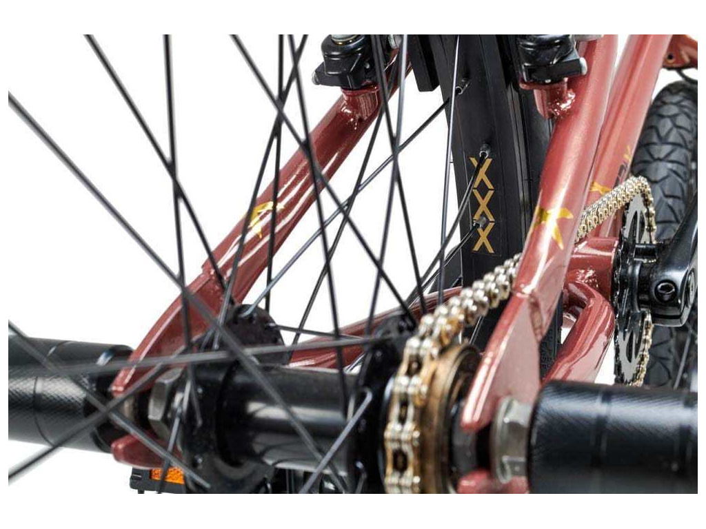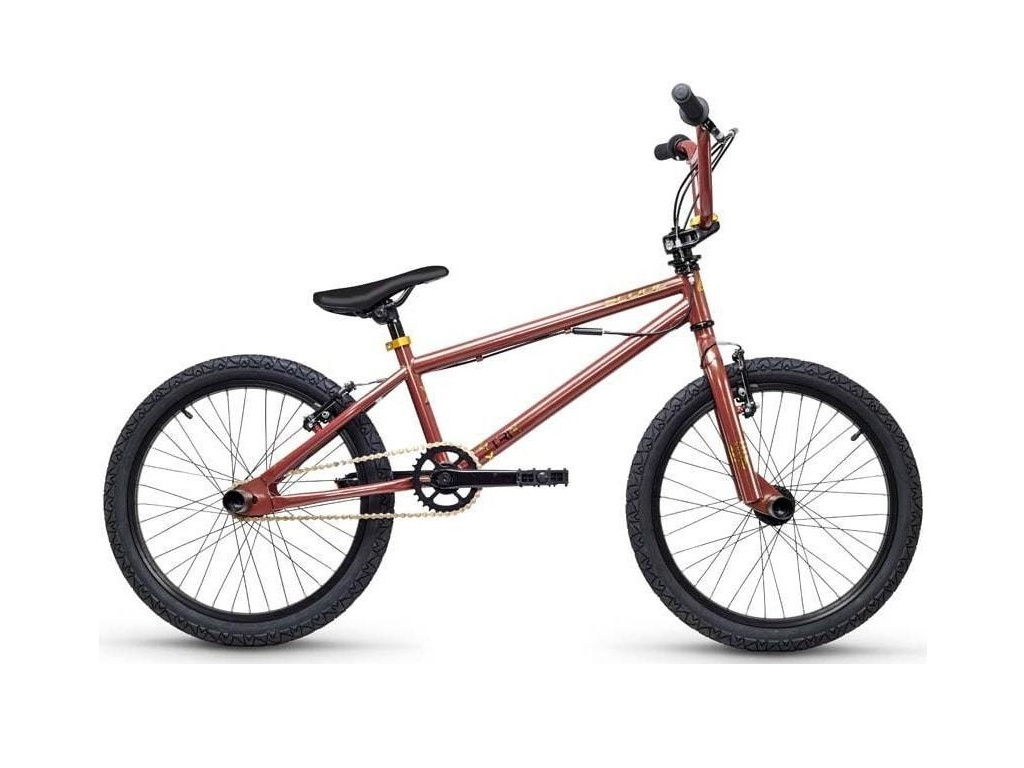 Detský bicykel BMX s priemerom kolies 20" pre deti s výškou nad 120 cm. Základom je odolný oceľový rám s vidlicou a komponentmi, ktoré nezlyhajú. Obsahuje twister, ktorý umožňuje otáčanie riadidiel, a kolíky na prvé triky BMX.