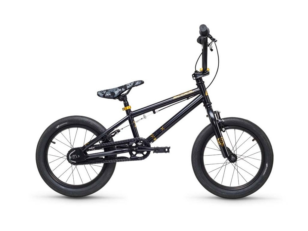 Detský bicykel BMX s priemerom kolies 16" pre deti s výškou nad 105 cm. Základom je odolný oceľový rám s vidlicou a komponentmi, ktoré nezlyhajú. Príjemným bezpečnostným prvkom je integrovaný ochranný kryt reťaze Hebie.