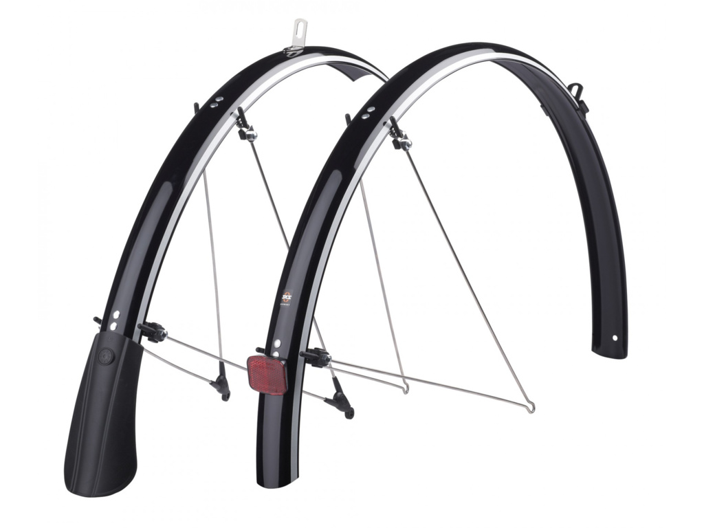 Alu-plastové blatníky SKS Bluemels s reflexnou vrstvou po obvode, skvelá viditeľnosť za zníženej viditeľnosti. Šírka 45 mm. Vhodné pre krosové a trekingové bicykle 28".