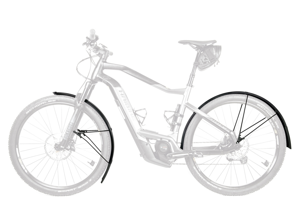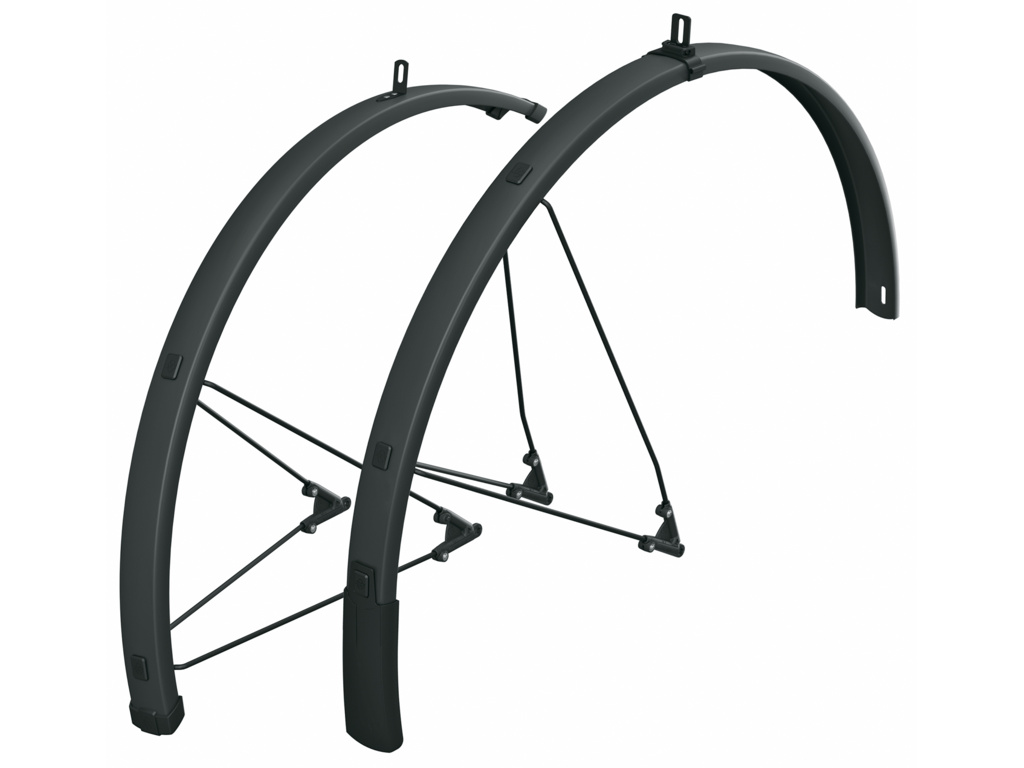 SKS Bluemels Style je sada blatníkov s ohybným spojlerom, ktorý ponúka vynikajúcu všestrannú ochranu proti striekajúcej vode. Vďaka flexibilnej sendvičovej konštrukcii, v ktorej sú ultrajemné hliníkové prúžky zasadené do plastového povlaku, je blatník extrémne robustný, tuhý a odolný proti korózii. Model má nový V-adaptér s bezpečnostným systémom ESC, ktorý odpojí dvojité U-vzpery, pokiaľ by sa medzi špice zachytili konáre. Vďaka tomu by sa koleso nemalo zaseknúť. S čiernym matným povrchom a čiernymi upevňovacími prvkami pôsobia blatníky jednotným dizajnom a vynikajú aj po vzhľadovej stránke.