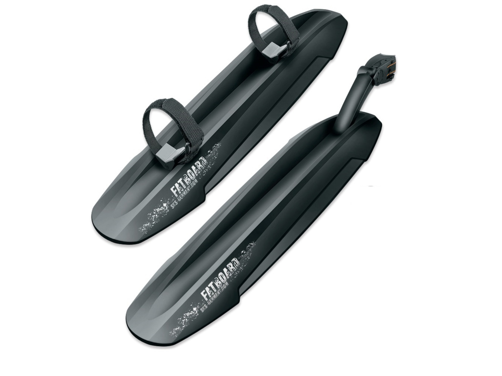 Sada blatníkov SKS FATBOARD je navrhnutá špeciálne pre fat bicykle, poskytuje účinnú ochranu pred blatom a nečistotami pre plášte so šírkou až 141 mm. Predný blatník sa jednoducho pripevňuje k dolnej rámovej trubke pomocou kvalitných gumových pások, zatiaľ čo zadný blatník je možné v priebehu niekoľkých sekúnd upevniť na sedlovku alebo dolnú rámovú trubku pomocou rýchloupínacieho systému SKS. Vďaka dvojkĺbovému ramenu je možné zadný blatník presne prispôsobiť geometrii vášho bicykla.