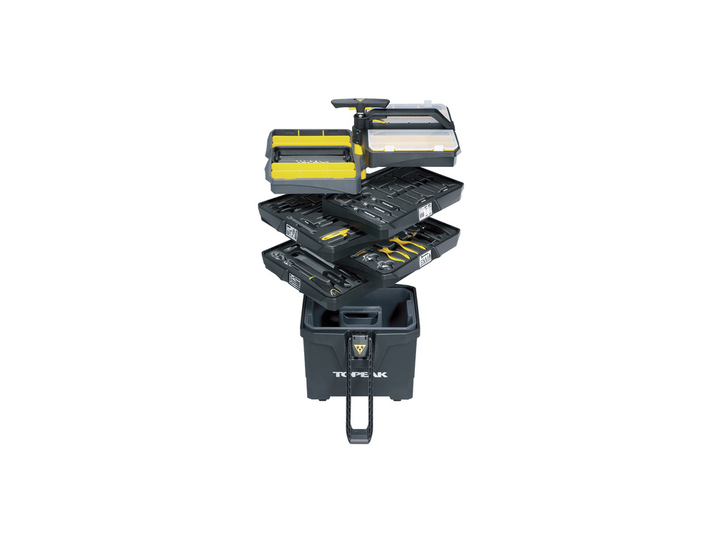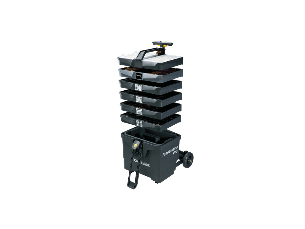 • jednotlivé zásobníky je možné demontovať z vozíka a upevniť na servisné stojany TOPEAK PrepStand Pro, Elite a Race