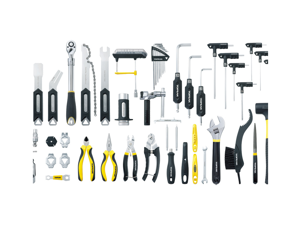 • 7 zásobníkov, obsahujúcich 55 dielenských nástrojov v profi kvalite na údržbu a opravu bicyklov