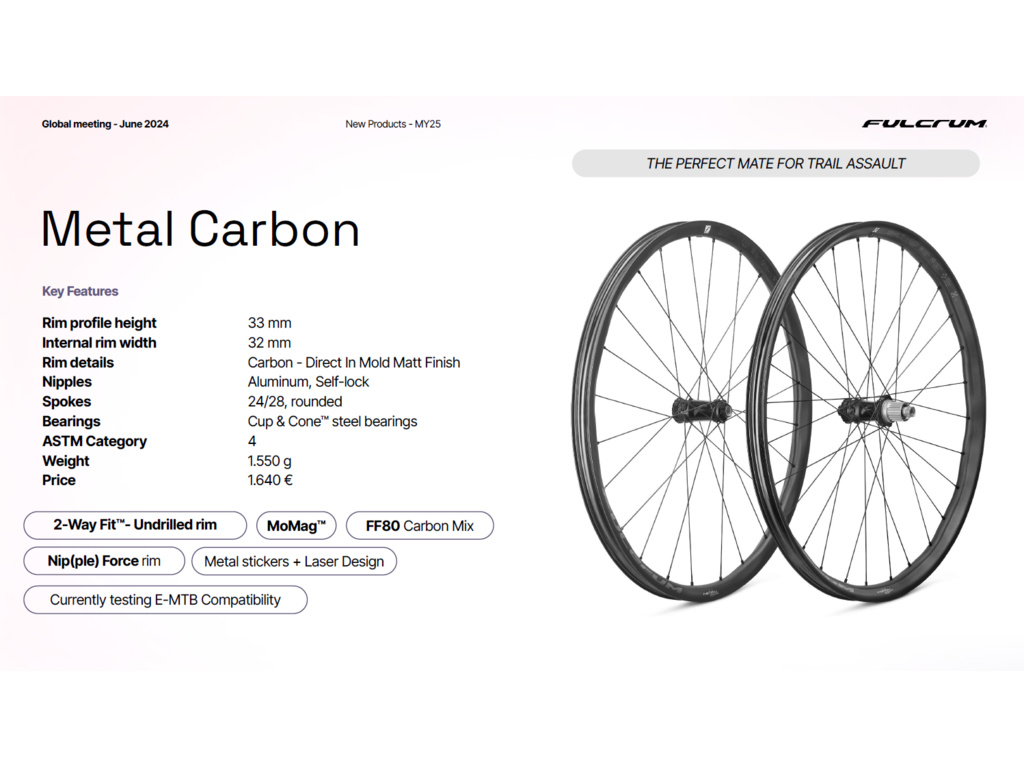 Návrat Fulcrumu do sveta MTB bol spočiatku zameraný na XC preteky s predstavením rodiny Red Zone a jej rôznych úrovní výkonu. To prirodzene viedlo k postupnému prechodu na trailové jazdenie. Metal Carbon a Metal ALX boli špeciálne navrhnuté pre tento segment, pričom hladko spájajú požiadavky na vysoký výkon na trailoch s potrebou obratnosti a odolnosti.