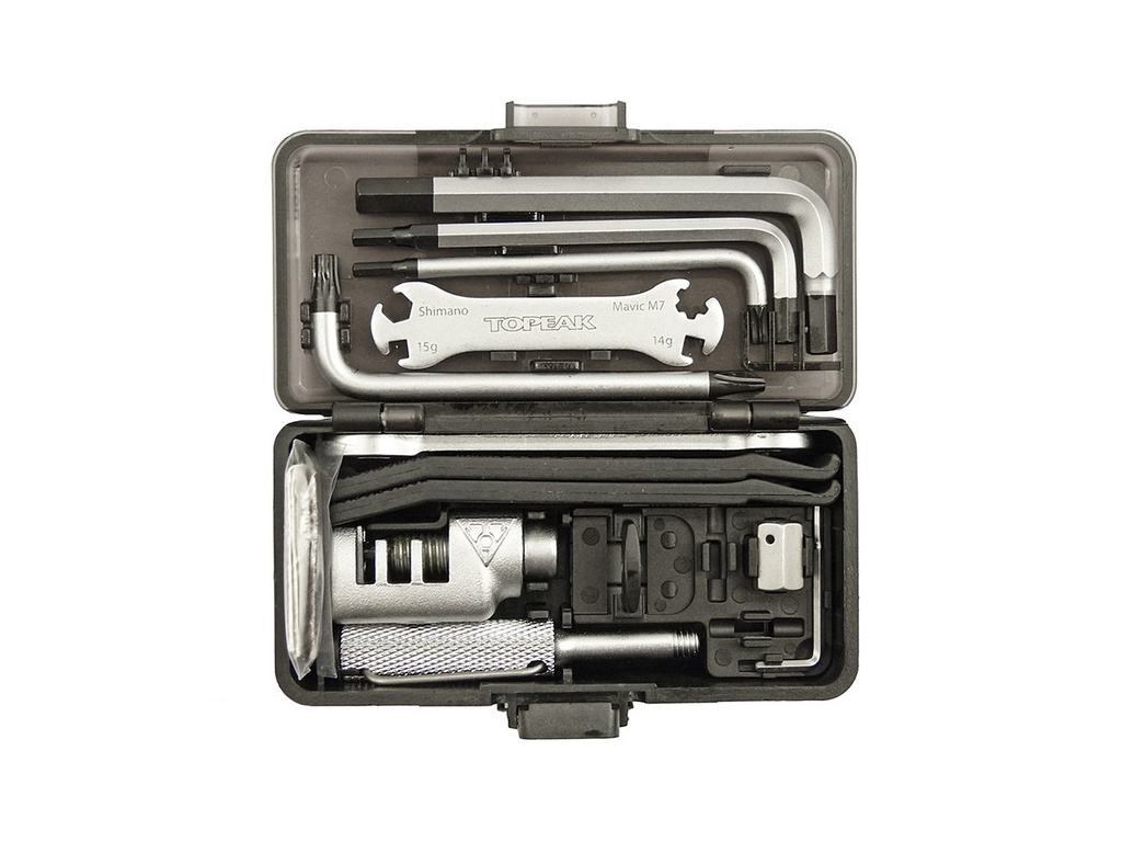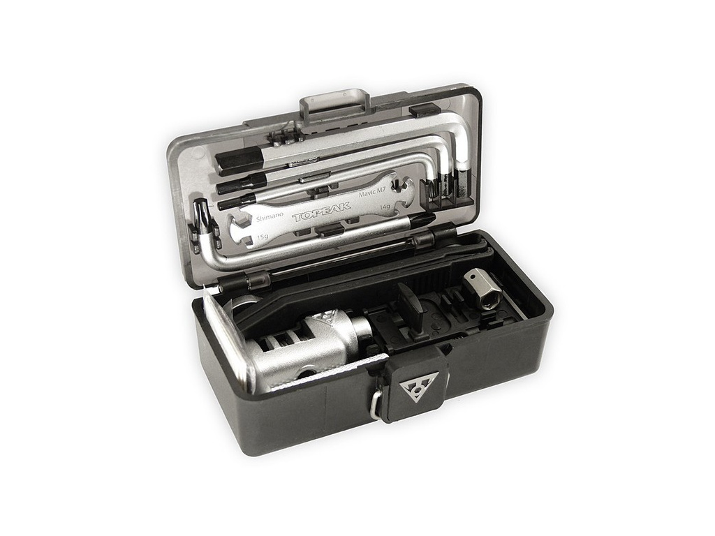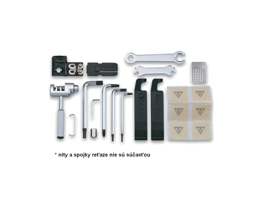 • kompletná sada profi náradia v odolnej krabičke, ktorú je možné uchytiť na rám bicykla pomocou QuickClick držiaku