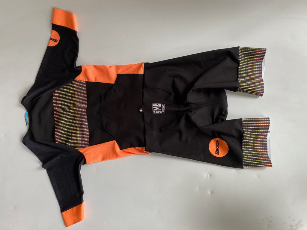 SANTINI Sleek custom Triathlon je aero triatlonová kombinéza navržená pro aerodynamiku a efektivitu, vyrobená z rychleschnoucího materiálu.
