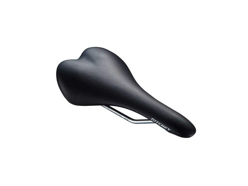 Ekonomický variant sedla Ritchey radu Streem, rozmer 132 x 278 mm, oceľové lyžiny, vinylový poťah, technológia Vector Wing tlmiaca vibrácie.