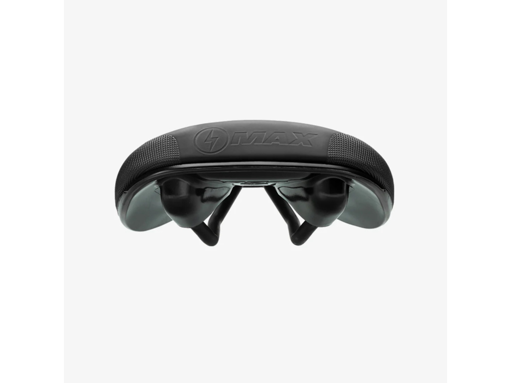 - Design: Sedlo Bel-Air V3 Max má širší tvar než standardní verze, což zajišťuje větší podporu sedacích kostí, zejména při delších vyjížďkách. Mírně zvednutá zadní část pomáhá při stoupání a zajišťuje lepší podporu, zatímco ergonomicky tvarovaná přední část usnadňuje šlapání a pohyb na kole.