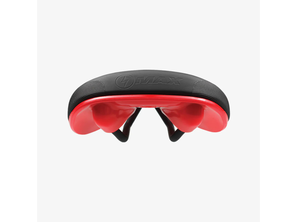 - Design: Sedlo Bel-Air V3 Max má širší tvar než standardní verze, což zajišťuje větší podporu sedacích kostí, zejména při delších vyjížďkách. Mírně zvednutá zadní část pomáhá při stoupání a zajišťuje lepší podporu, zatímco ergonomicky tvarovaná přední část usnadňuje šlapání a pohyb na kole.