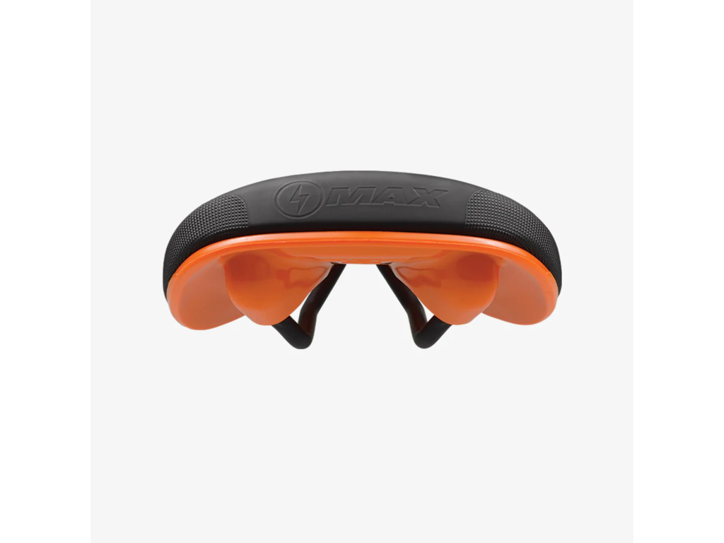 - Design: Sedlo Bel-Air V3 Max má širší tvar než standardní verze, což zajišťuje větší podporu sedacích kostí, zejména při delších vyjížďkách. Mírně zvednutá zadní část pomáhá při stoupání a zajišťuje lepší podporu, zatímco ergonomicky tvarovaná přední část usnadňuje šlapání a pohyb na kole.