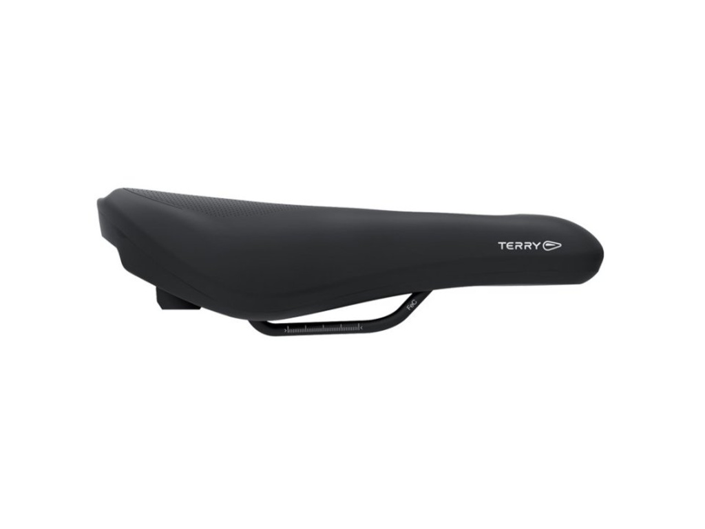 O pohon komfortu se stará kombinace pěnového polstrování ErgoFoam a gelových vložek ComfortGel, které tlumí vibrace a snižují tlak na sedací kosti. Sedlo využívá 3zónový princip komfortu Terry – odlehčovací kanál minimalizuje tlak v citlivé střední oblasti, plynulé přechody na okrajích snižují tření a horní plocha podporuje přirozené usazení pánve.