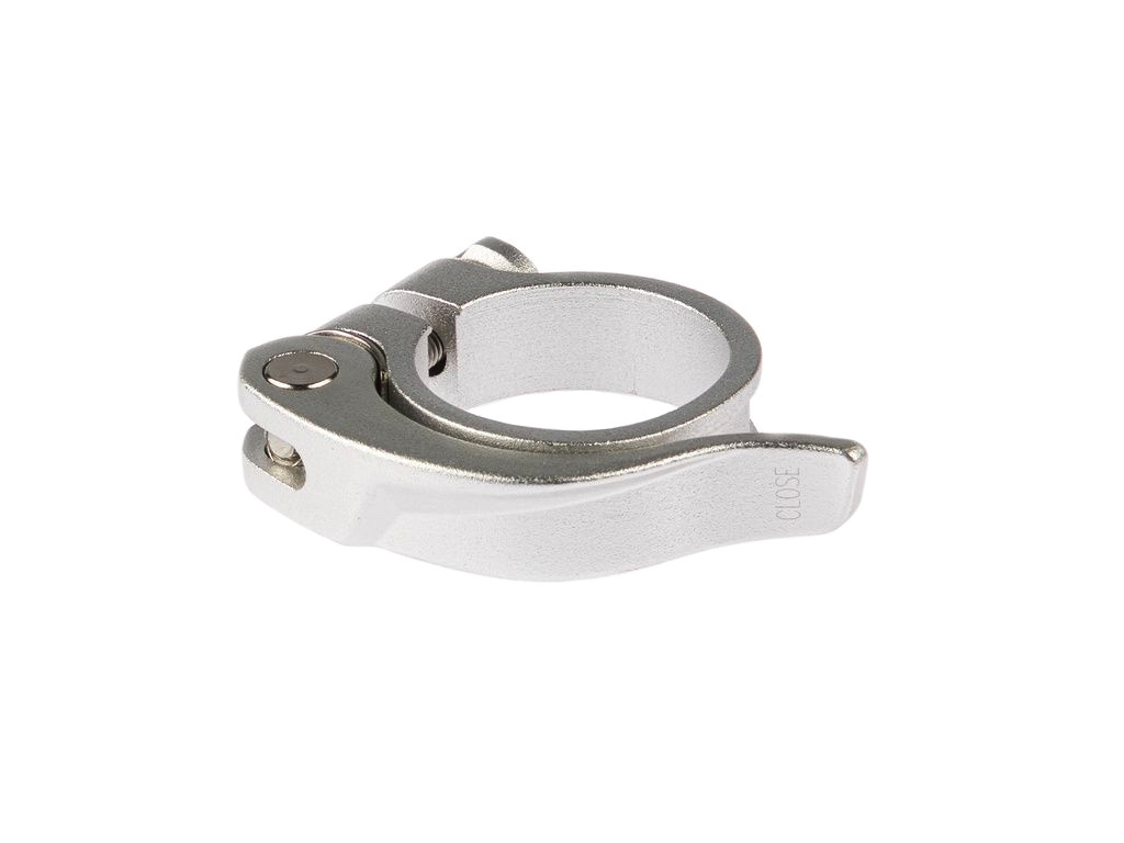 Ľahká sedlová objímka s rýchloupínacím mechanizmom vhodná pre hliníkové sedlovky. V striebornej eloxovanej povrchovej úprave.