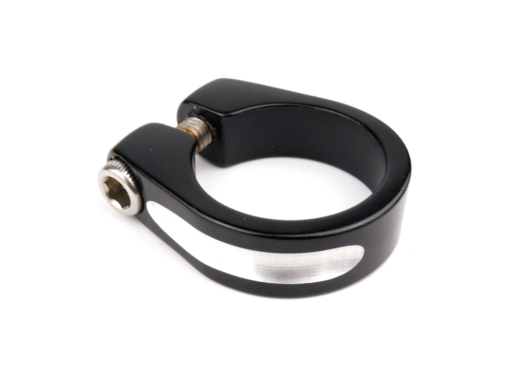 Hliníková objímka sedla s frézovanými bočnými stranami v čiernej farbe.