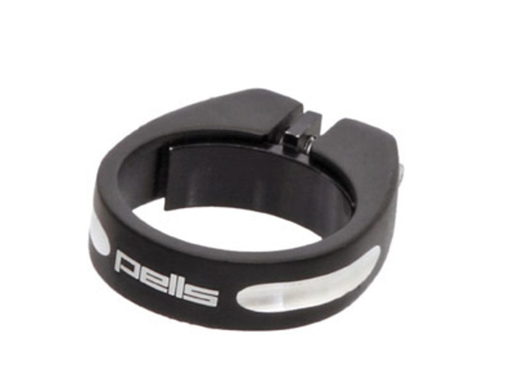 Za studena kovaná sedlová objímka Pells pre karbónové sedlovky. Priemer 34,9 mm, čierna farba.