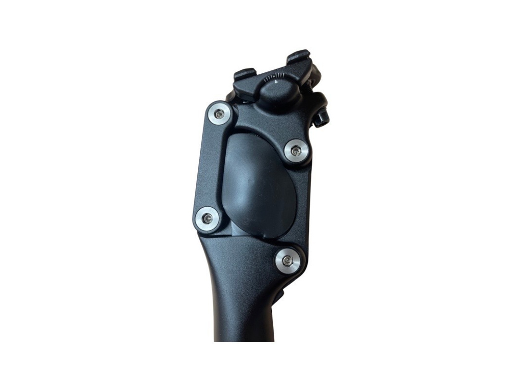Odpružená sedlovka s paralelogramem zaručuje přirozené pružení ve směru pohybu těla. Tvrdost lze nastavit šroubem na spodu sedlovky, kterým se nastaví tvrdost pružiny.