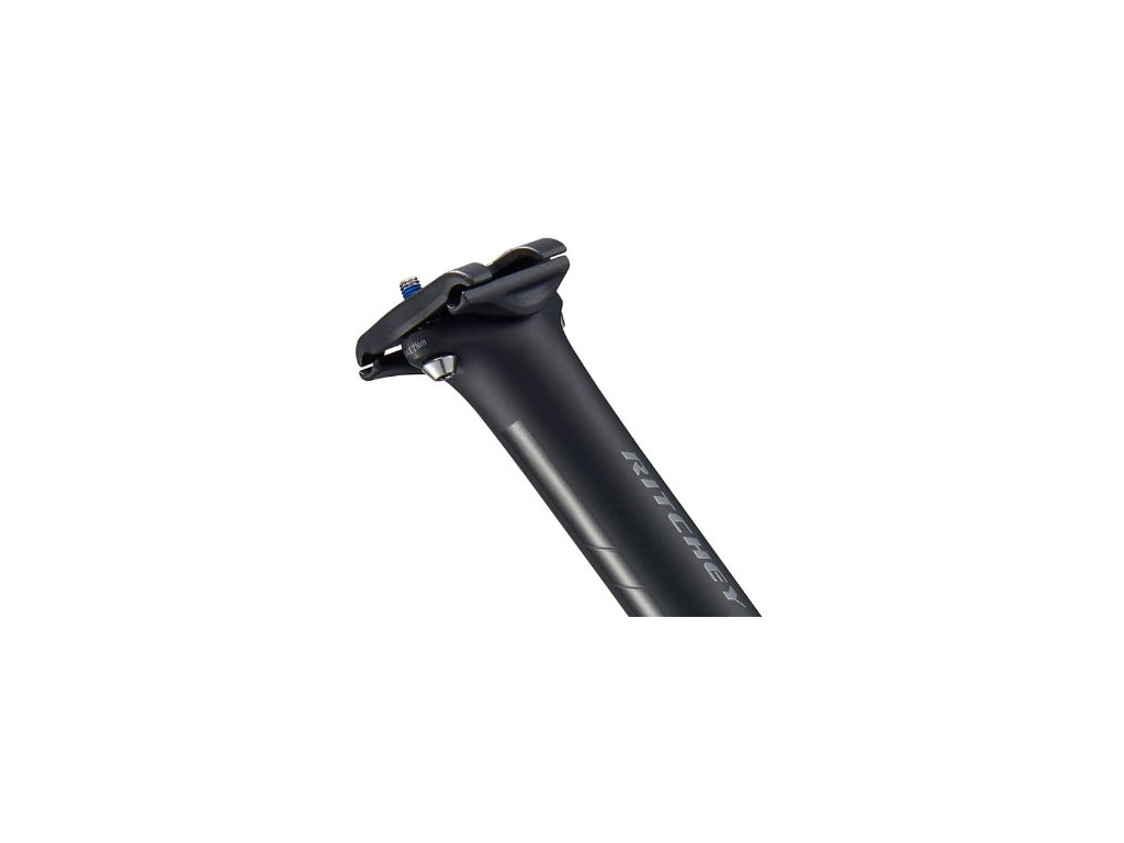 Najnovšia karbónová sedlovka s Alu zámkom. Dizajn karbónových vlákien zvyšuje absorpciu rázov a tým aj komfort jazdca, bez straty torznej tuhosti.
