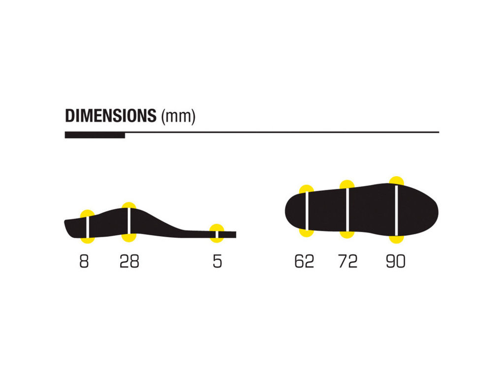Nová konštrukcia vložiek z ľahkého a priedušného materiálu, stavba vložky prispôsobená anatómii chodidla s nízkou klenbou (2,8 cm). Veľký EVA vankúš pod pätou na tlmenie charakteristických nárazov na pätnú kosť. Vložka svojou 3D konštrukciou, podporou pozdĺžnej a priečnej klenby, optimálne rozloží tlak na celú plochu chodidla. Perforácia v prednoží napomáha odvetrávaniu vlhkosti v obuvi. Veľkosť a tvar je možné upraviť zastrihnutím v špičke.