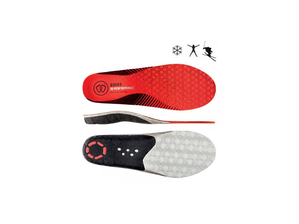Vložky Sidas Winter 3D Performance efektívnejšie prenášajú pohyb nôh cez topánky ďalej na lyže, lepšie upevňujú pätu a podporujú pozdĺžnu klenbu, tým umožňujú presnejšie ovládanie lyží. Izolačná hliníková fólia a pena EVA pod nohami poskytujú väčší komfort.