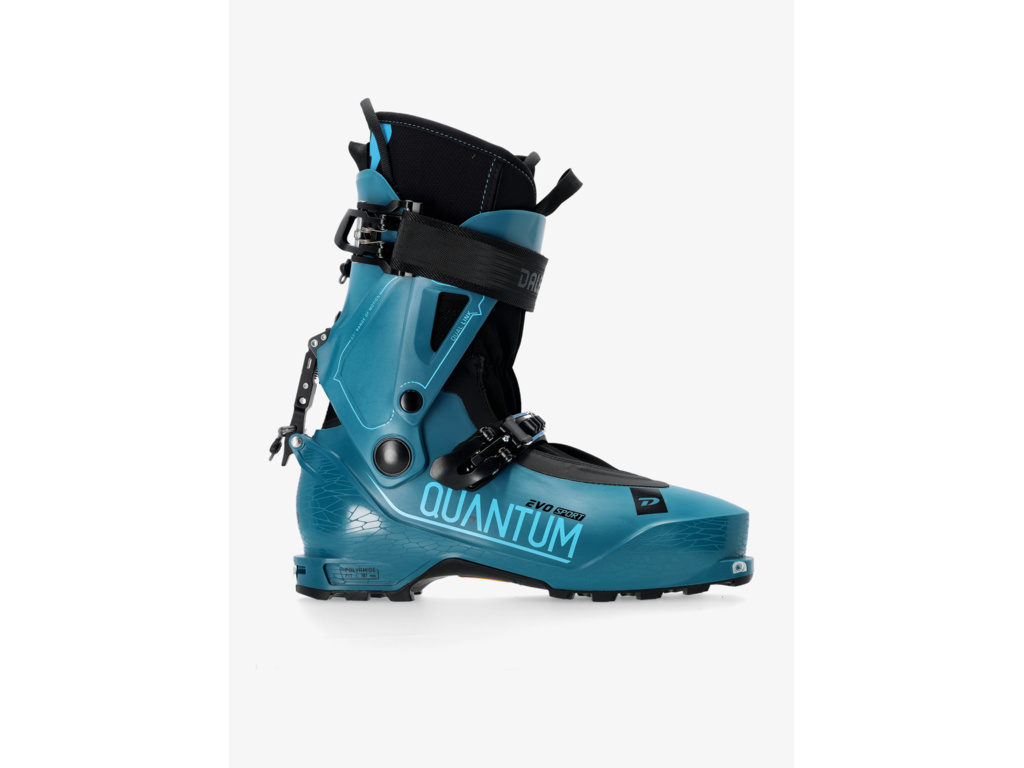 Ultra skialpové boty Quantum Evo Sport mají inovativní dvoudílnou konstrukci skořepiny z polyamidu vyztuženého karbonem a anatomický střih. Kombinují velmi pevnou, vlákny vyztuženou vnější skořepinu pro sjezdové výkony s maximální volností pohybu při stoupání. Nízká hmotnost a manžeta EVO Dual Link s rozsahem pohybu 65° dodávají chůzi přirozený pocit a šetří energii. Jakmile se ocitnete na vrcholu, jednoduše uzavřete vyšší manžetu s polstrováním holeně pomocí přezky Hike & Ride a silového pásku na suchý zip, čímž získáte skvělé přizpůsobení a optimální přenos energie. Široký pásek na suchý zip má paměťovou funkci a rychlé uvolnění a stačí jej nastavit pouze jednou. Širší středový otvor ve skořepině v kombinaci s pružnou manžetou usnadňuje obouvání a zouvání boty. Lehká vícevrstvá vložka poskytuje vynikající oporu paty, teplo a pohodlí. Boty Quantum EVO jsou vybaveny technologií MyFit, takže je lze individuálně přizpůsobit každé noze. Podrážka z materiálu Vibram s odstupňovanou tvrdostí pomáhá botě pevně držet ve sněhu a při stoupání.
