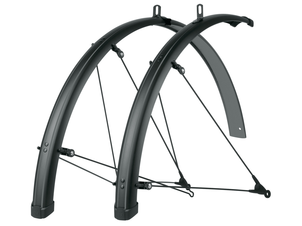Teraz ešte širší, dlhší a štýlovejší! Čierno matná sada blatníkov BLUEMELS STRIPES od SKS so šedými pruhmi dodá bicyklu skvelý vzhľad. Vďaka čiernym pätkám a chrániču okrajov s logom SKS je čistý vzhľad jednoducho dokonalý. Rozšírené profily zaisťujú optimálnu ochranu proti striekajúcej vode a nečistotám.