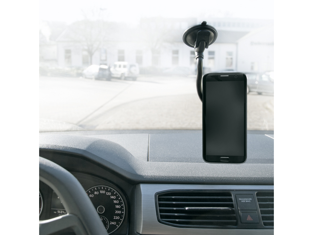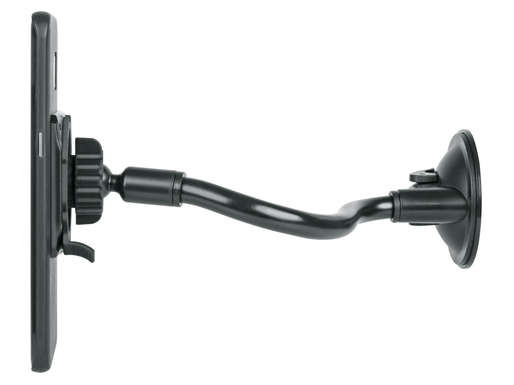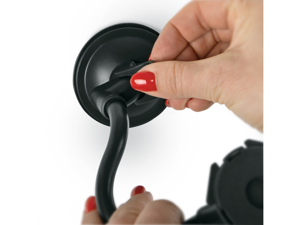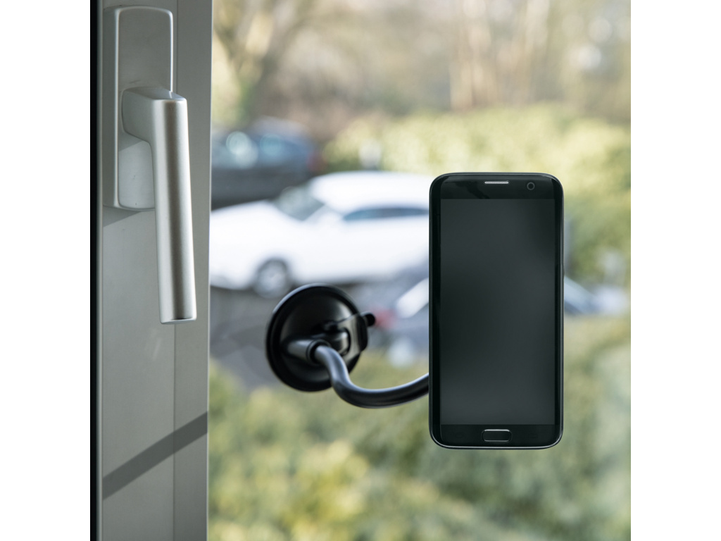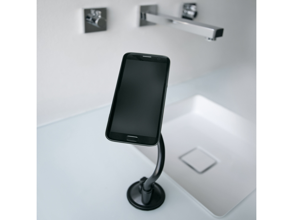 Flexibilný držiak na mobilný telefón s ohybným ramenom. Či už v aute, v kuchyni alebo v práci: s COMPIT FLEXX budete mať mobilný telefón vždy na očiach. Tento všestranný systém má flexibilné rameno, ktoré možno ľahko ohnúť do požadovanej polohy. Uhol mobilného telefónu možno nastaviť a vďaka otočnému guľovému kĺbu ho možno používať v horizontálnej aj vertikálnej polohe. Môžete tak vidieť svoj smartfón a mať voľné ruky. Pevná prísavka pre bezpečné uchytenie. Silikónová prísavka s podtlakovým pákovým mechanizmom zaisťuje bezpečné uchytenie na všetkých hladkých povrchoch, ako sú dlaždice, čelné sklo alebo sklo. Povrch odporúčame vopred vyčistiť. Vďaka osvedčenému bajonetovému držiaku COMPIT možno smartfóny k držiaku pripojiť jediným otočením a potom ich opäť odpojiť. To si vyžaduje kryt na mobilný telefón COMPIT.
