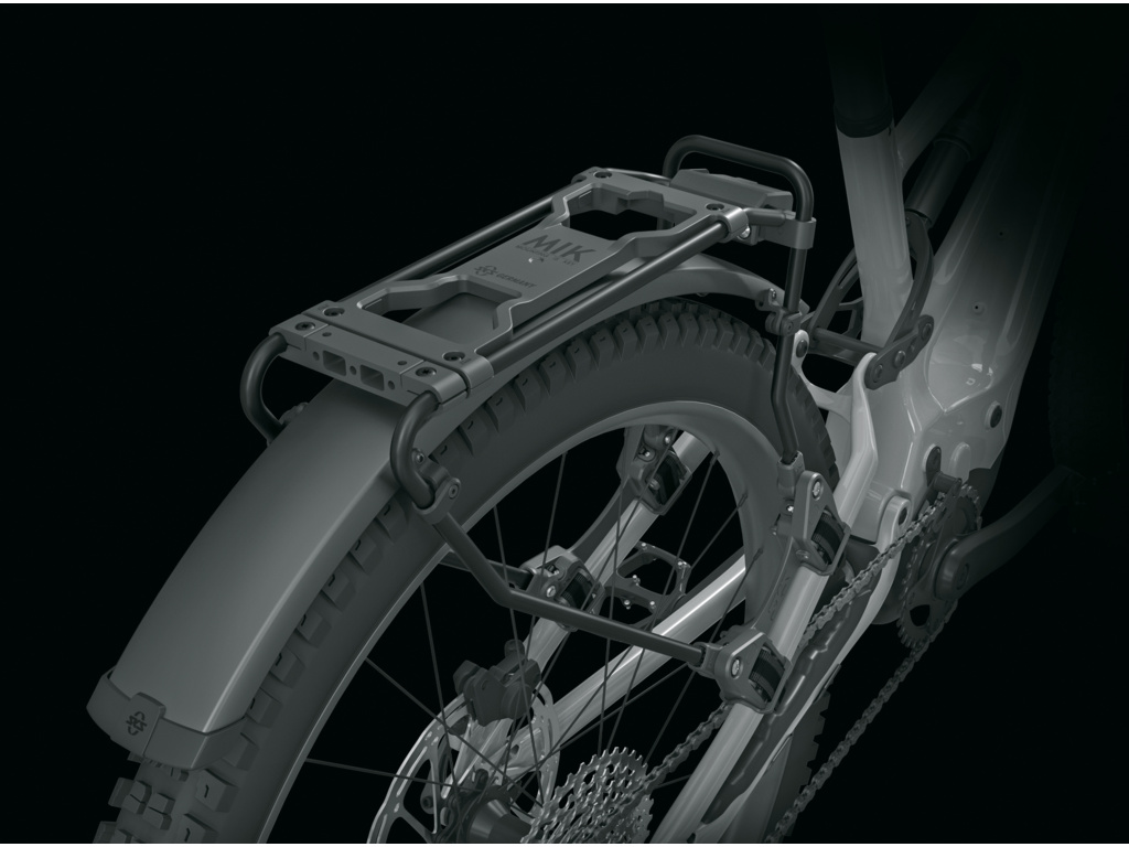 Blatník s čiernym matným povrchom je diskrétne integrovaný pod nosič batožiny. Vďaka pružnej sendvičovej konštrukcii, v ktorej sú ultrajemné hliníkové prúžky zapustené do plastovej vrstvy, je INFINITY UNIVERSAL MUDGUARD mimoriadne robustný, tuhý a odolný proti korózii. Blatníky sú k dispozícii v dvoch šírkach profilu 56 alebo 75 mm.
