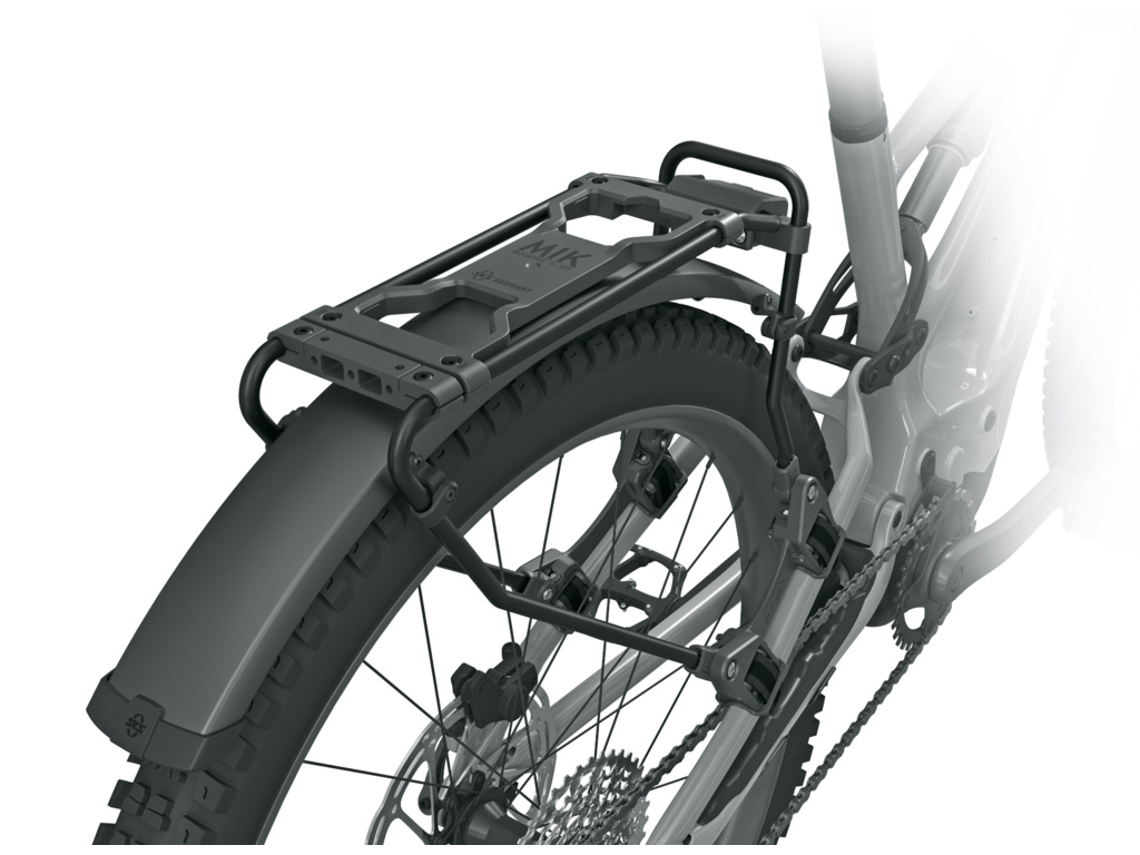 Blatník s čiernym matným povrchom je diskrétne integrovaný pod nosič batožiny. Vďaka pružnej sendvičovej konštrukcii, v ktorej sú ultrajemné hliníkové prúžky zapustené do plastovej vrstvy, je INFINITY UNIVERSAL MUDGUARD mimoriadne robustný, tuhý a odolný proti korózii. Blatníky sú k dispozícii v dvoch šírkach profilu 56 alebo 75 mm.