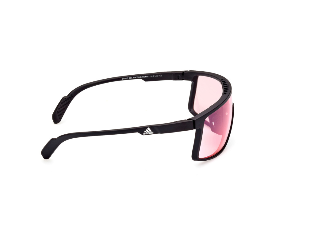 Slnečné okuliare Adidas Sport SP0057 sú súčasťou najnovšej kolekcie Adidas Sport určenej pre ženy aj mužov (unisex). Tento elegantný celorámový model odráža súčasné trendy v dizajnérskej očnej optike a patrí medzi fotochromatické okuliare, ktorých šošovky reagujú na svetlo zafarbením alebo zmenou farby. Proces tónovania prebieha v priebehu niekoľkých sekúnd, aby boli vaše oči čo najrýchlejšie chránené pred slnečnými lúčmi a škodlivým UV žiarením. Materiál použitý na výrobu rámu je ľahký plast, ktorý zaručuje spoľahlivosť a odolnosť. Nastaviteľné chrániče nosa s gumou na vnútornej strane zaisťujú výnimočné pohodlie, maximálnu priľnavosť a vynikajúci výkon bez ohľadu na šport.