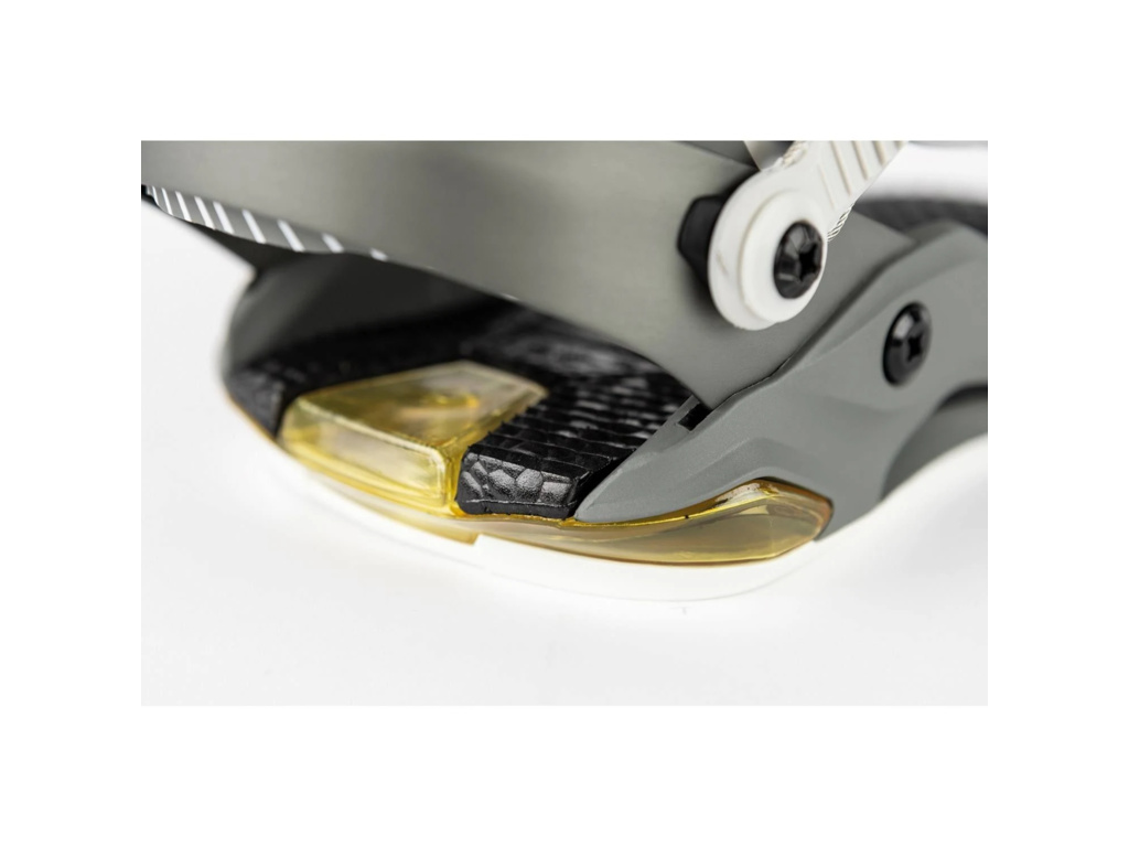 4mm zvýšený podpatek zlepšuje přechod z hrany na hranu a omezuje nežádoucí kontakt boty se sněhem. Přesné uchycení zajišťuje Premium Locked Down kotníkový strap spolu s Vibram® Übergrip toe strapem, které perfektně drží i v mrazu a vlhku. Všechny pásky jsou navíc vyztužené ocelovým lankem pro maximální spolehlivost.
