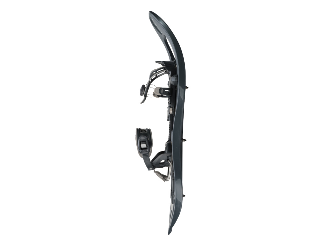 3D design rámu – jednolitý výlisek rámu z kvalitních plastů „Made in French Alps“. Obsahuje 6 hrotů z nerezové oceli, které lze vyměnit. Tři hladiny kontaktu se sněhem zabezpečují plnou funkčnost sněžnice bez ohledu na druh sněhu a v traverzech budeš mít jistotu. Na tvrdém sněhu a ledu jsou v kontaktu jen ostré hroty, ale pokud jdeš po ufoukaném sněhu, začínají zabírat i vylisované příčníky a sněžnice nepodkluzují. V měkkém zabírá celá plocha sněžnice včetně obloukového okraje a neboří se, ani nepodkluzují.