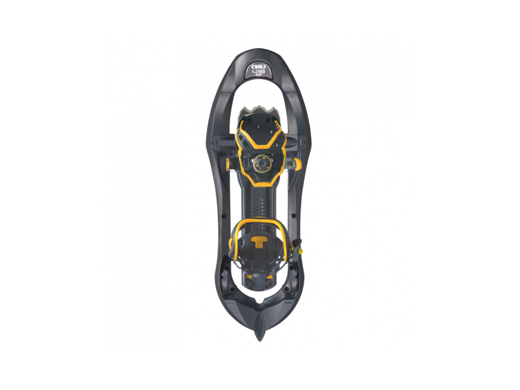 4D – Tři hladiny kontaktu se sněhem zabezpečují plnou funkčnost sněžnice bez ohledu na druh sněhu a v traverzech budeš mít jistotu. Na tvrdém sněhu a ledu jsou v kontaktu jen ostré hroty, ale pokud jdeš po ufoukaném sněhu, začínají zabírat i vylisované příčníky a sněžnice nepodkluzují. V měkkém zabírá celá plocha sněžnice včetně obloukového okraje a neboří se, ani nepodkluzují. Při sestupu je 4D dizajn pohodlný, protože pata klesne pod úroveň rámu sněžnice a chodidlo je tak v pohodlnějším úhlu.