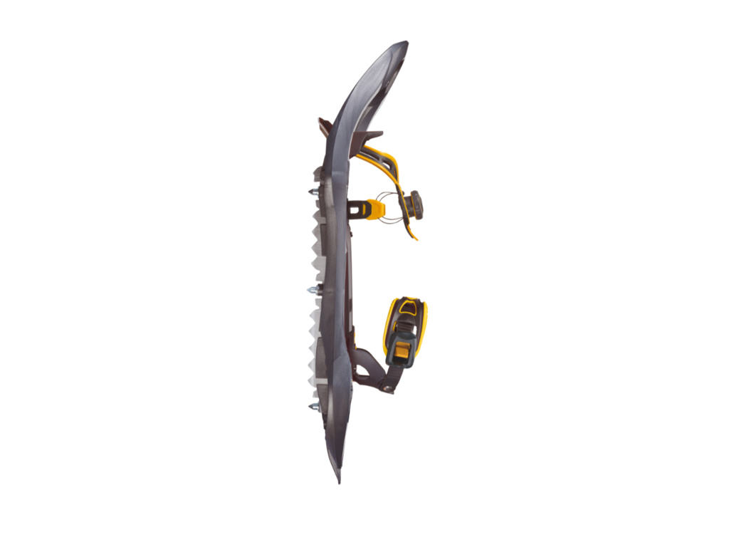 4D – Tři hladiny kontaktu se sněhem zabezpečují plnou funkčnost sněžnice bez ohledu na druh sněhu a v traverzech budeš mít jistotu. Na tvrdém sněhu a ledu jsou v kontaktu jen ostré hroty, ale pokud jdeš po ufoukaném sněhu, začínají zabírat i vylisované příčníky a sněžnice nepodkluzují. V měkkém zabírá celá plocha sněžnice včetně obloukového okraje a neboří se, ani nepodkluzují. Při sestupu je 4D dizajn pohodlný, protože pata klesne pod úroveň rámu sněžnice a chodidlo je tak v pohodlnějším úhlu.