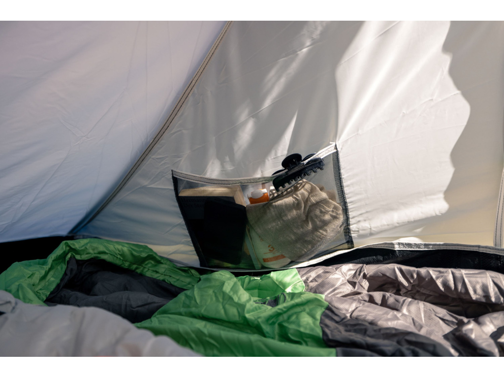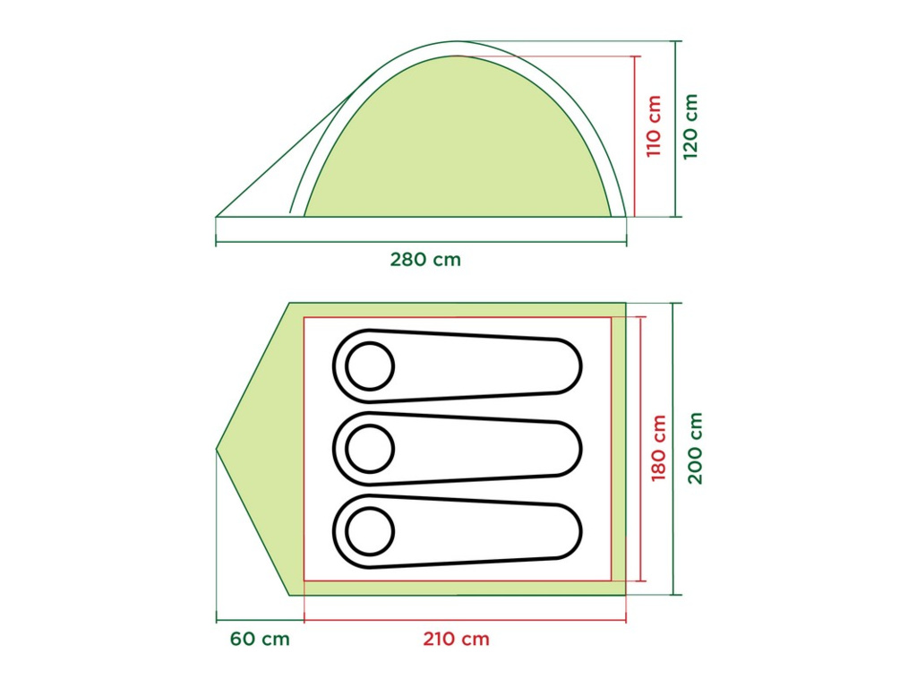 Spoľahlivý turistický stan zaberajúci minimum miesta. Dvojrúrková kupola sa dá ľahko postaviť. Apsida poskytuje spoľahlivý úložný priestor pre batohy. Vonkajší stan: polyester 68D, PU zábal 3000 mm, podlepené švy; Vnútorný stan: priedušný polyester a nepriehľadná sieťovina; Podlaha: polyetylén; Konštrukcia: laminované tyče; UV ZÁRANA, OCHRANA PROTI POŽIARU, ĽAHKÁ STAVBA; Rozmery zloženého stanu: 50 x 16 x 16 cm; Hmotnosť: 3,4 kg.