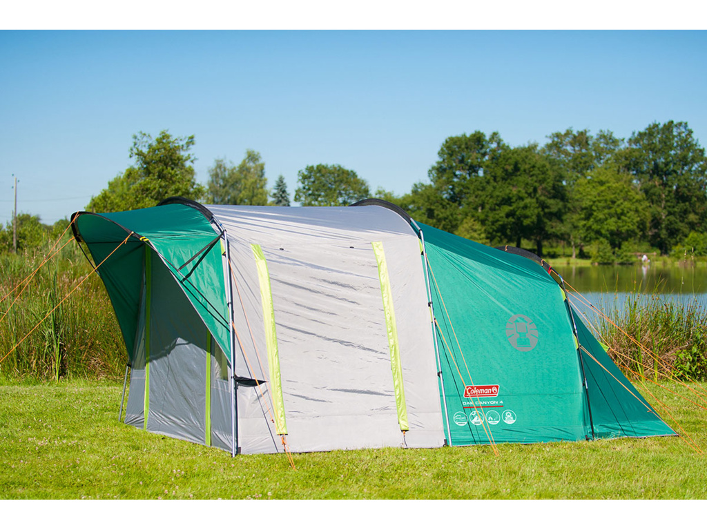 Spoľahlivý rodinný stan Coleman Oak Canyon 4 je stabilný stan pre 4 osoby s pevnou podlahou a flexibilnými tyčami. Stan sa ľahko stavia, veľká predsieň je vybavená panoramatickým oknom, spálne sú vyrobené zo svetluodolnej tkaniny a vaše s