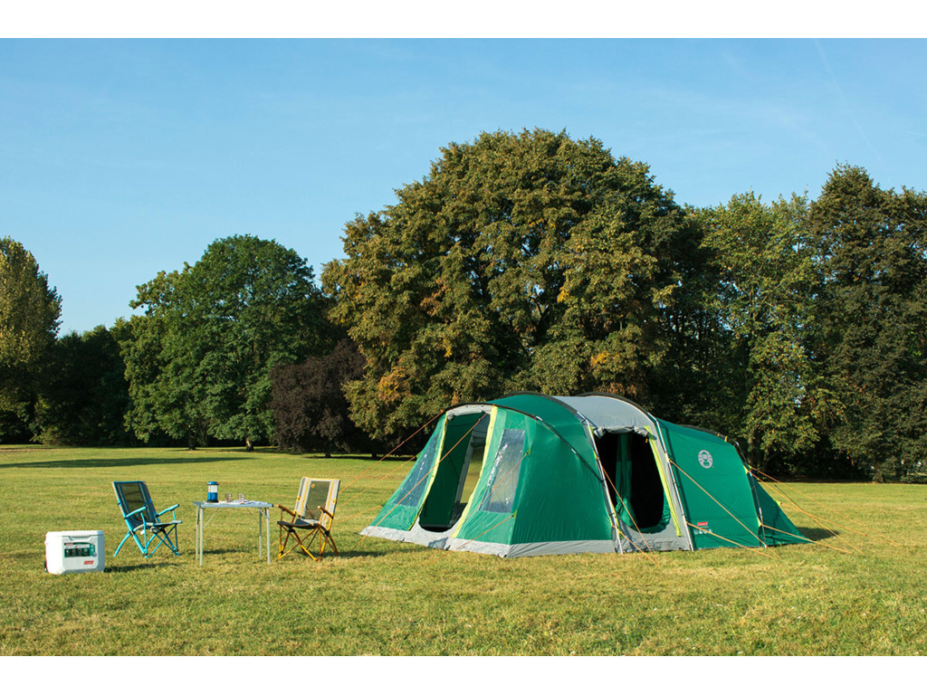 COLEMAN Oak Canyon 6 - Mimoriadne priestranný rodinný stan pre 6 osôb s odolnou hybridnou konštrukciou je skvelou voľbou na kempovanie vďaka prémiovej technológii BlackOut Bedroom® a veľkým panoramatickým oknám v predsieni.