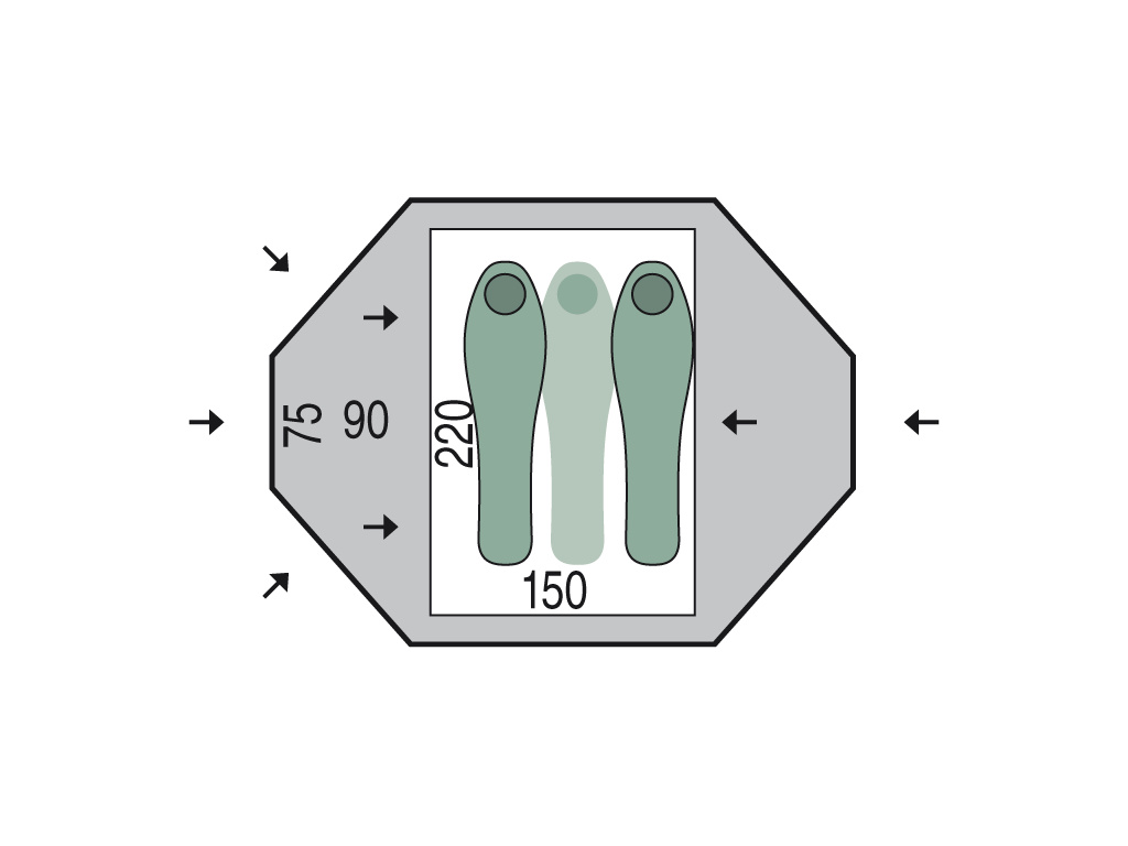 Stan má kupolovitú konštrukciu s dvoma vchodmi a predsieňami a dvoma priečnymi vrcholovými tyčami. predsiene sú dostatočne vysoké, tuhosť konštrukcie robí stan vhodným na použitie v náročnejších podmienkach. tropiko je vyrobené z polyesteru s polyuretánovou povrchovou úpravou, čo zaručuje vodný stĺpec 4 000 mm. švy sú podlepené nepremokavou páskou. Obloženie je vyrobené z nylonu s polyuretánovým povlakom a poskytuje vodný stĺpec 10 000 mm.Tyče pozostávajú z laminátových segmentov s priemerom 8,5 mm (hlavné tyče) a 9,5 mm (predné podpery). Stan je dvojplášťový a skladá sa z vnútorného stanu a vonkajšieho plášťa - tropika. Vnútorný stan má obdĺžnikový pôdorys s dvoma vchodmi na dlhších stranách. Vonkajší stan má tvar osemuholníka, má tiež dva vchody, v ktorých sú dve predsiene, vhodné na uloženie batožiny alebo varenie v prípade nepriaznivého počasia.Koncept stanuJe založený na princípe tyčovej konštrukcie navlečenej v tuneloch mimo tropika. Tropiko a vnútorný stan (ktorý