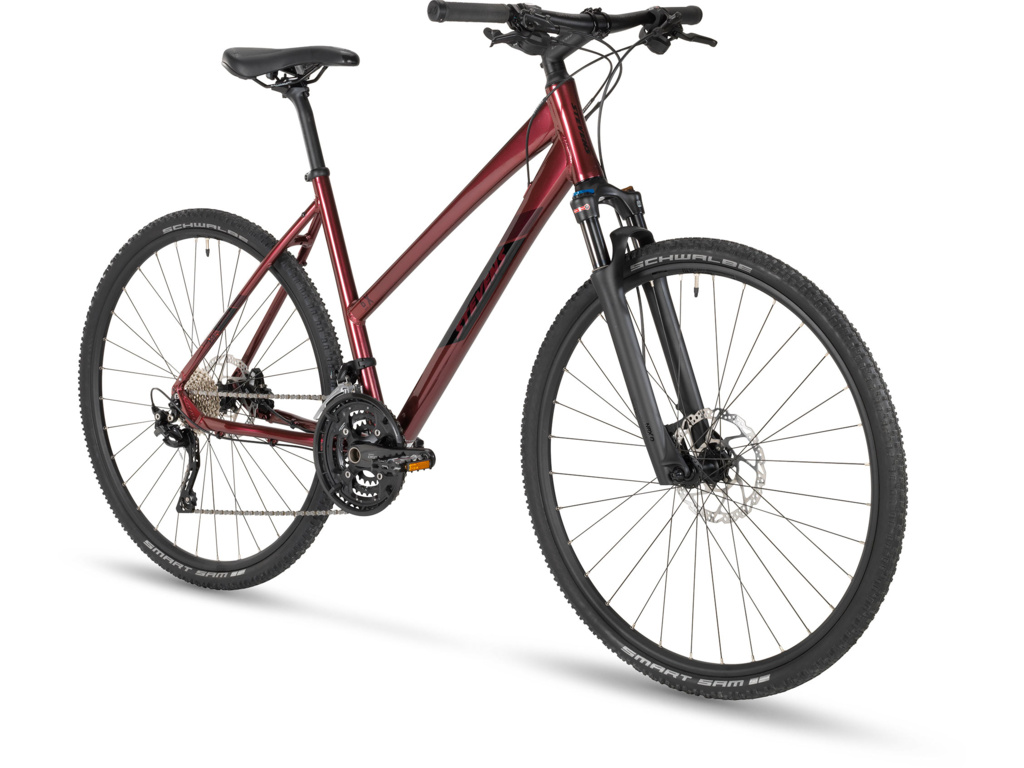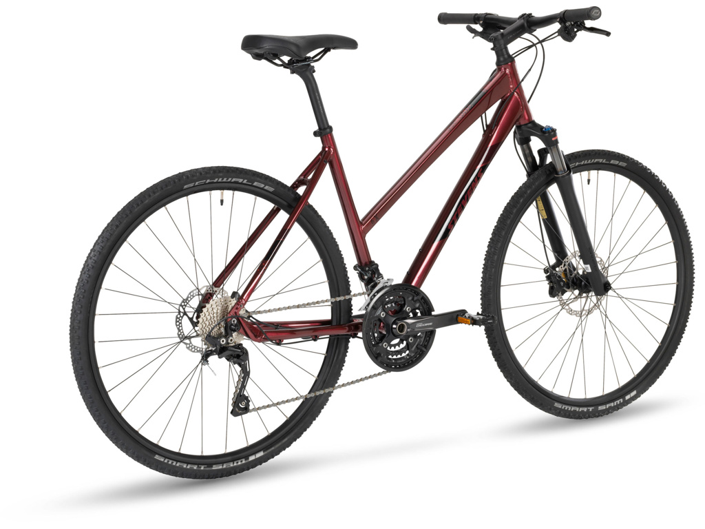 STEVENS 6X HT je crossový bicykel, ktorý vás nadchne svojou vyváženosťou a všestrannosťou, pretože kombinuje ľahký a odolný trojito zoslabovaný hliníkový rám s komfortnými prvkami, spoľahlivý pohon Shimano Deore 3x10, odpruženú vidlicu SR Suntour s olejovým tlmením a rýchle plášte Schwalbe Smart Sam, vďaka čomu je ideálnou voľbou pre športovú jazdu v teréne aj každodenné dochádzanie.