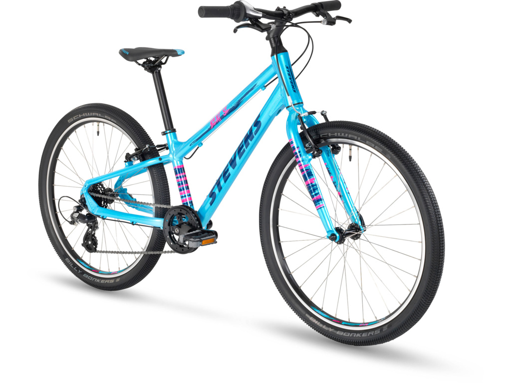 STEVENS Beat SL 24 je športový detský bicykel s kompaktným rámom z hliníkovej zliatiny 6061 TB, pevnou hliníkovou vidlicou, otočným radením Shimano 1x8 a prehazdovačkou Altus, ktorý vďaka hmotnosti iba 9,6 kg a rýchlym plášťom Schwalbe Billy Bonkers ponúka perfektnú kombináciu nízkej hmotnosti, ľahkého ovládania a spoľahlivého výkonu pre mladých jazdcov na spevnených cestách aj v ľahkom teréne.