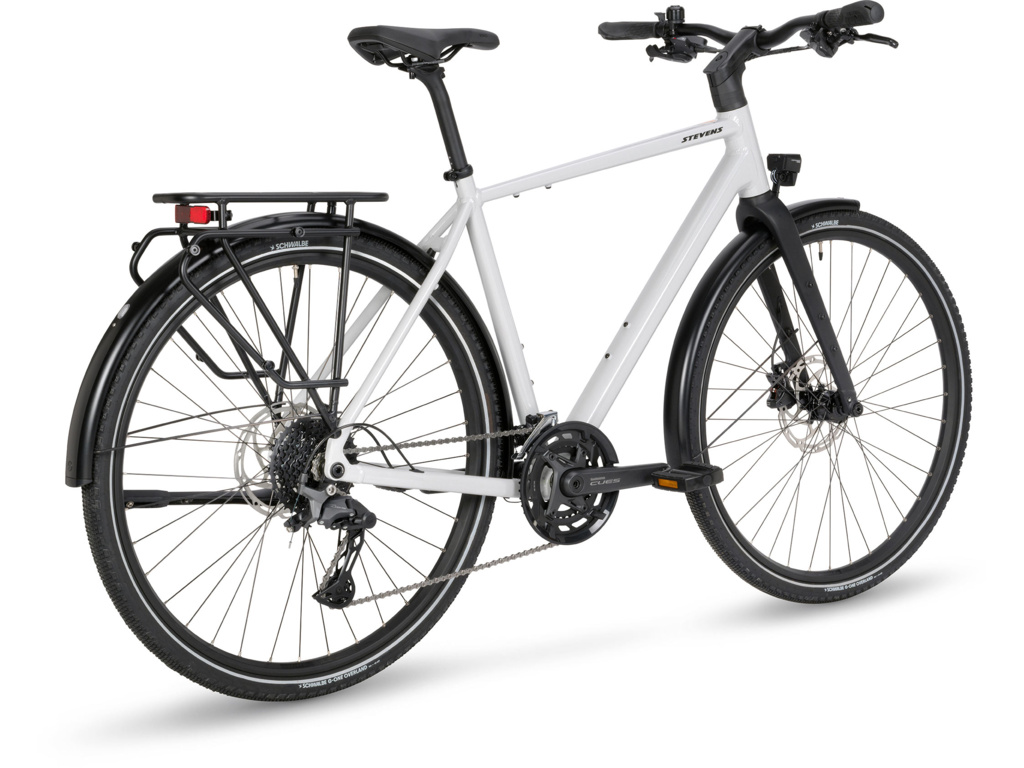 STEVENS Caleta 7.1 kombinuje športový jazdný prejav s každodennou praktickosťou. Ľahký rám z hliníkovej zliatiny 6061 a pevná vidlica zabezpečujú presné ovládanie, zatiaľ čo pohon Shimano CUES U6000 v konfigurácii 2x10 ponúka široký rozsah prevodov na jazdu v meste aj v kopcovitom teréne. Hydraulické brzdy Tektro Volans s kotúčmi 180 mm prinášajú istotu pri každom zastavení. Bicykel je vybavený kvalitným osvetlením napájaným dynamom a univerzálnymi 45mm plášťami Schwalbe, ktoré zvládnu asfalt aj šotolinu. Ergonomický kokpit zabezpečuje pohodlie aj na dlhších trasách.