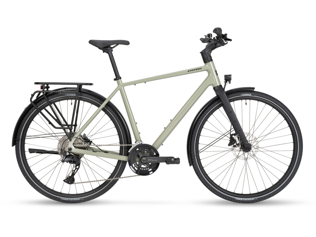 Vysoko kvalitný trekingový bicykel ideálny na dochádzanie aj voľnočasové výlety. STEVENS Caleta 8.1 ponúka presné radenie Shimano CUES U6000 2x11, výkonné brzdy Shimano Deore a spoľahlivé osvetlenie napájané dynamom.