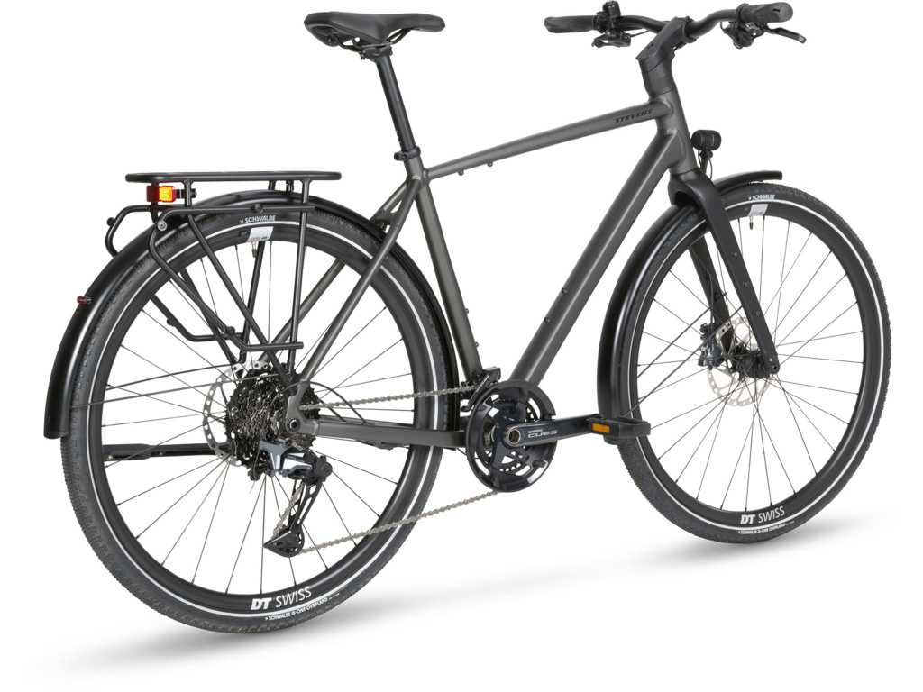 Prémiový trekingový bicykel na každodennú jazdu aj dlhé výlety. STEVENS Caleta 9.1 je vybavený špičkovou sadou Shimano CUES U8000, výkonnými brzdami a kvalitnými kolesami DT Swiss HG 1800.